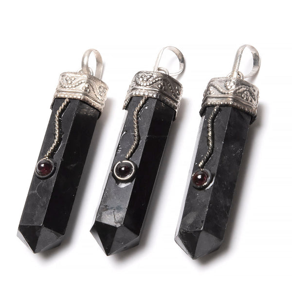 Kristalliriipus, viisteinen pyöreä riipus hopealla
