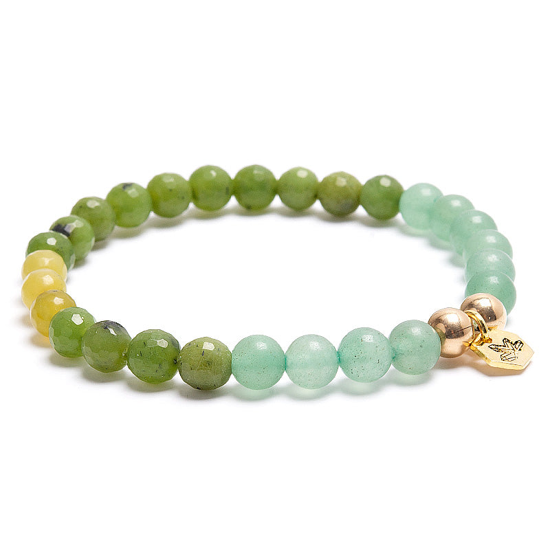 Armbandet är ca 18 cm i omkrets och består av 26-29 st 6mm pärlor av äkta kristaller och stenar samt detaljer av silver eller guldpläterat silver. Stenpärlorna kan variera hur de ser ut jämfört med bilden, ibland förekommer det även fasettslipade pärlor. Armbandet är designat och producerat av Kristallrummet.
